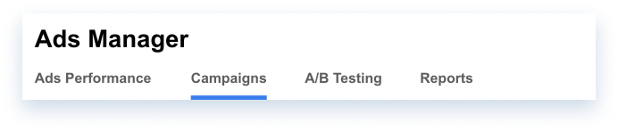- Campaigns: A workspace to create ads, view all ads, and edit ads.